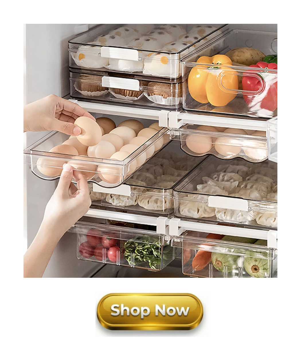 Organizing my fridge used to wear me out. Food was always piled on top of each other, leftovers were easy to forget, and finding ingredients took way too much time. Vegetables often dried out or went bad, fruit ended up in the wrong drawers, yogurt got hidden behind other containers, eggs were easily crushed, and raw food was stored next to cooked food. Everything changed when I found a few really useful fridge organization products. Clear bins, pull-out drawers, egg holders, and produce containers made everything much neater. Now my fridge is clean, space-saving, and I can find what I need in just seconds